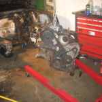 Golf: Kabelbaum gestript, Hosenrohr abgeschraubt, Motor ausgebaut (hängt noch am Kran), Brems- und Spritleitungen ausgebaut, Tank entfernt, Schaltbox rausgenommen, keine wirklichen Roststellen gefunden