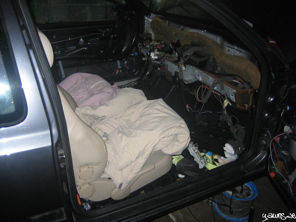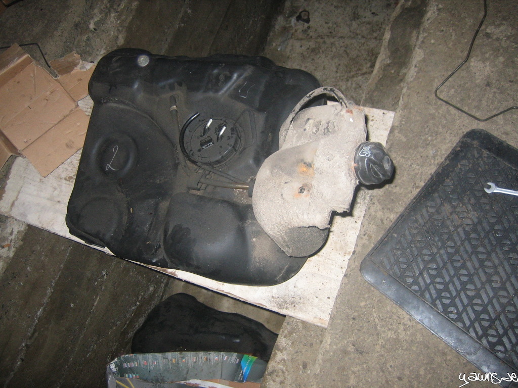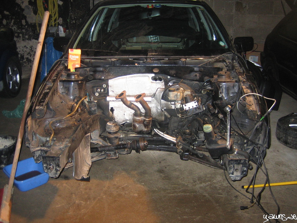 Golf: Kabelbaum gestript, Hosenrohr abgeschraubt, Motor ausgebaut (hängt noch am Kran), Brems- und Spritleitungen ausgebaut, Tank entfernt, Schaltbox rausgenommen, keine wirklichen Roststellen gefunden