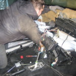 Wir haben den ABrettträger und die Stützen montiert, Kabelbäume der Klimatronic und die Sensoren und Bedienelemente angesteckt und haben dann versucht, den Zylinder der Kupplung einzuclipsen.