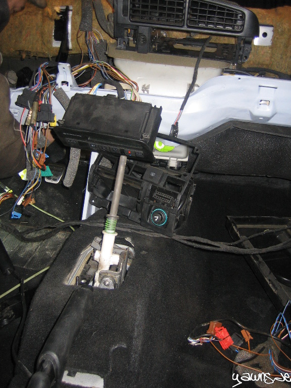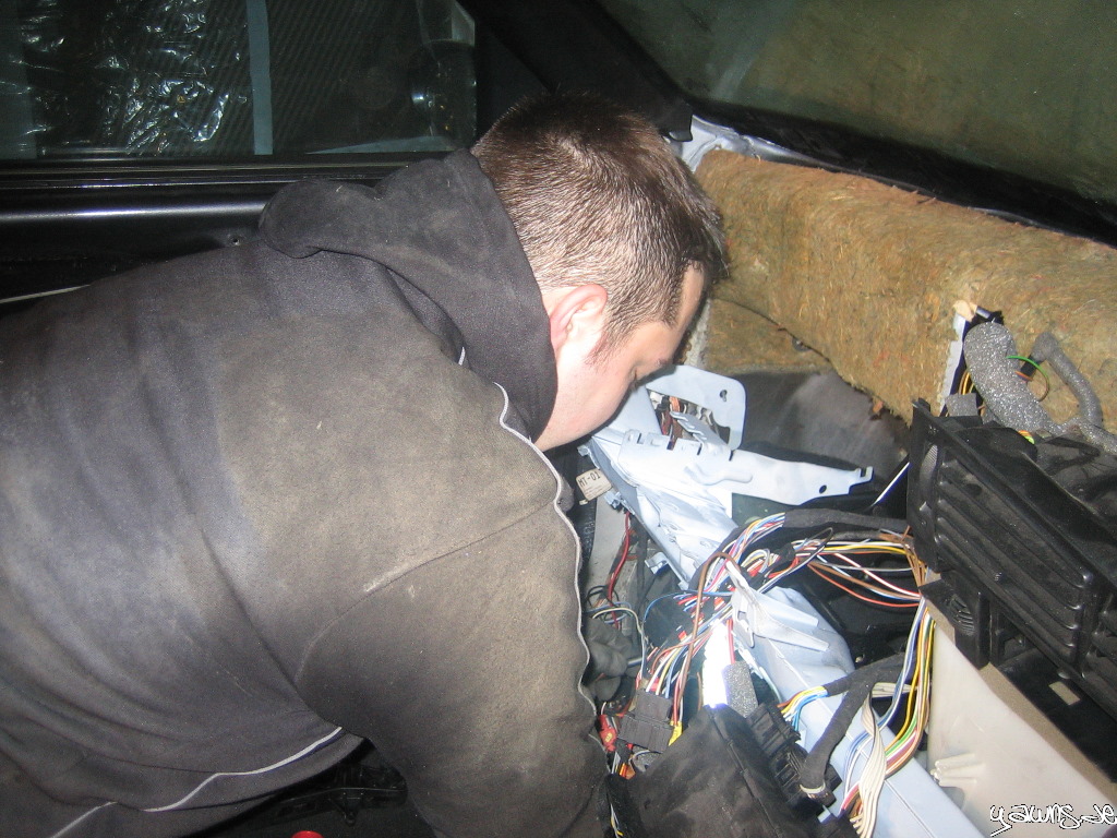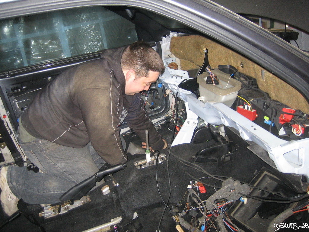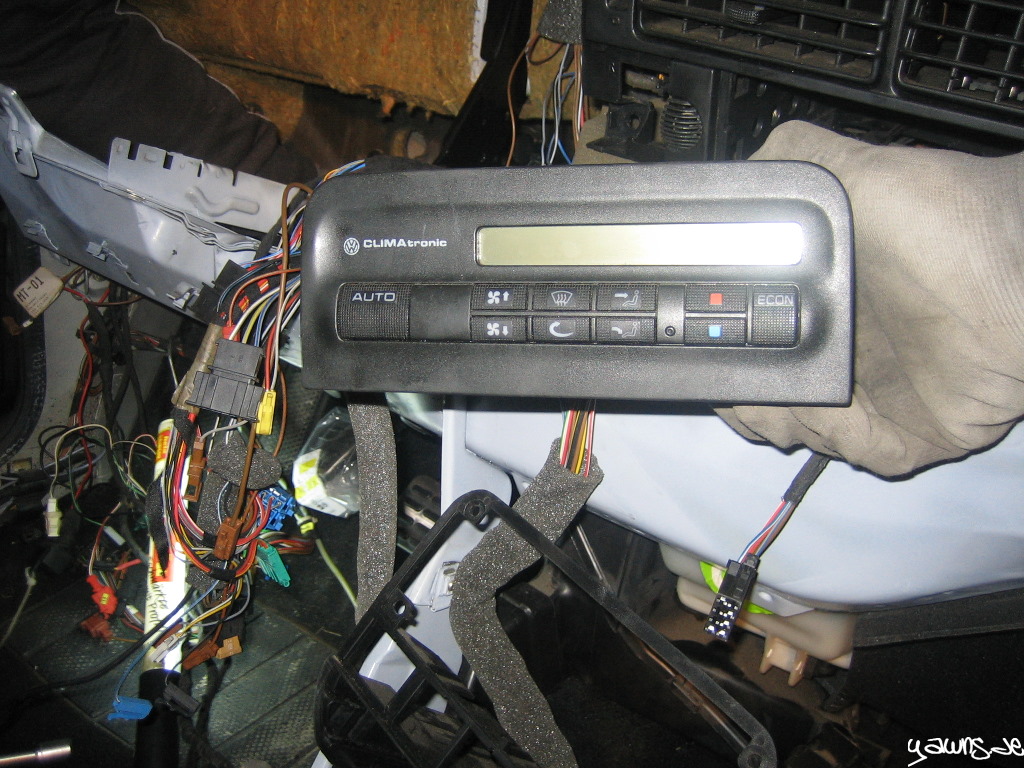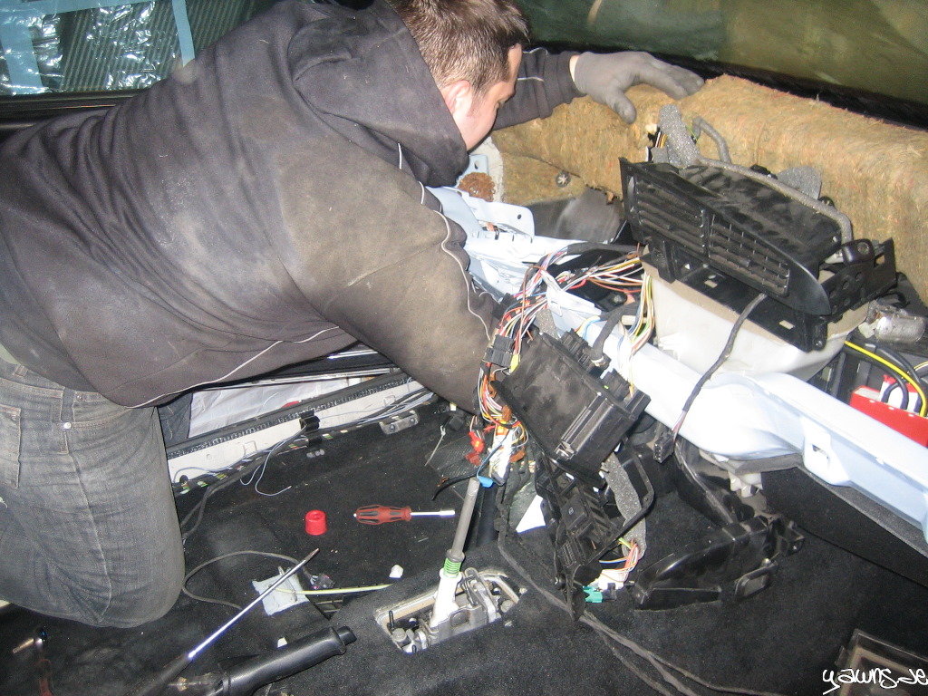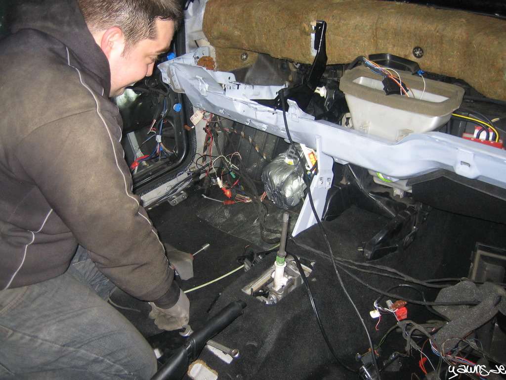 Wir haben den ABrettträger und die Stützen montiert, Kabelbäume der Klimatronic und die Sensoren und Bedienelemente angesteckt und haben dann versucht, den Zylinder der Kupplung einzuclipsen.