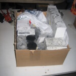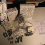 Im Paket sind Motorlager, diverse Lager der Vorderachse, neue Schrauben vorne, neue Muttern für die Antriebswellen, ein Ölfilter, ein Spritfilter, Kleinscheiss und 3 Sätze Wagenfarbe/Klarlack für die Stellen, an denen wir arbeiten mussten.