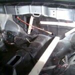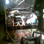 Die neue Spritzwand hat noch eine Schicht Lack und Klarlack erhalten, und wurde anschliessend verbaut (geklebt und geschraubt). Vorher kam der neue Tank rein inkl neu lackierter Tankbänder. Anschliessend wurden die Hitzeschutzbleche hinten verbaut, und die neu gelagerte Achse kam unters Auto. War zwar nervig, aber Tim und ich haben es auch zu zweit geschafft. Noch ist sie nicht ausgerichtet (sitzt zu weit links), aber der Wagen kann schon mal wieder auf seinen zukünftigen Rädern stehen.