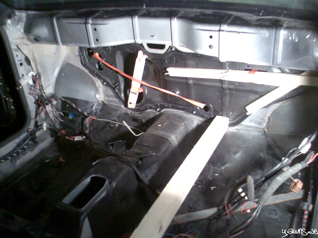 Die neue Spritzwand hat noch eine Schicht Lack und Klarlack erhalten, und wurde anschliessend verbaut (geklebt und geschraubt). Vorher kam der neue Tank rein inkl neu lackierter Tankbänder. Anschliessend wurden die Hitzeschutzbleche hinten verbaut, und die neu gelagerte Achse kam unters Auto. War zwar nervig, aber Tim und ich haben es auch zu zweit geschafft. Noch ist sie nicht ausgerichtet (sitzt zu weit links), aber der Wagen kann schon mal wieder auf seinen zukünftigen Rädern stehen.