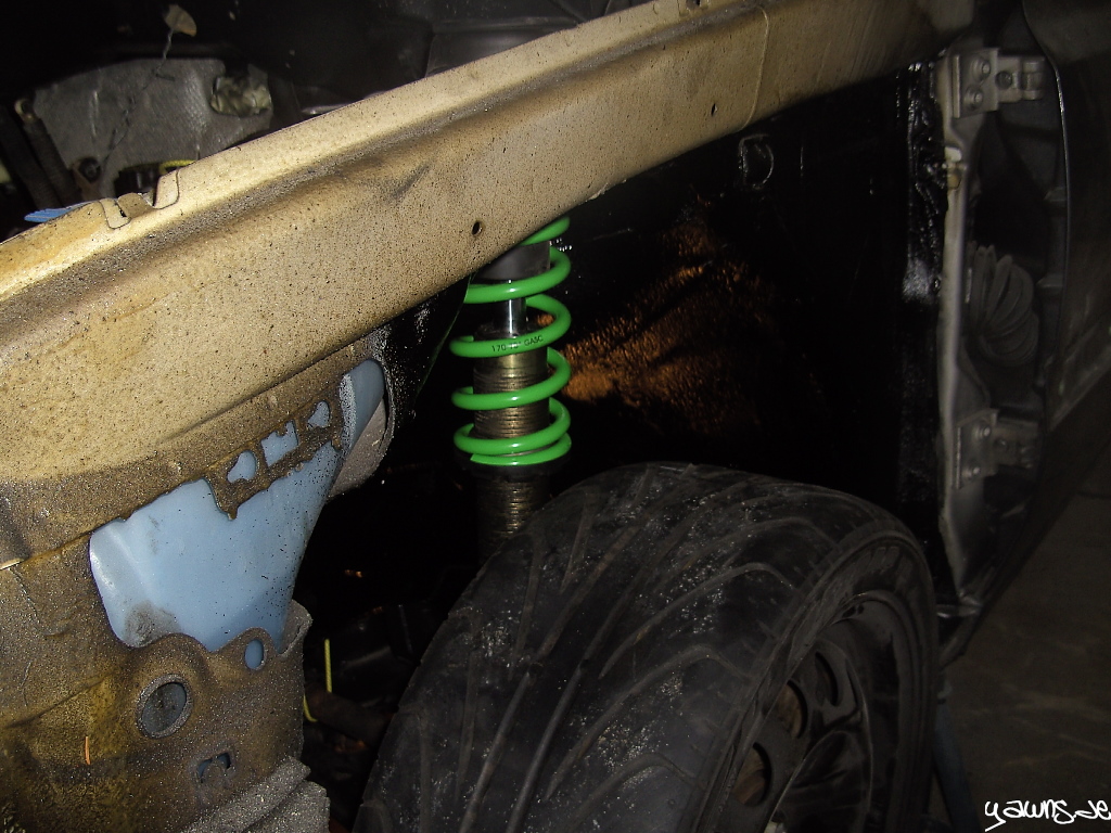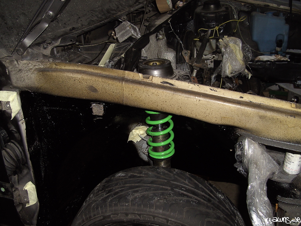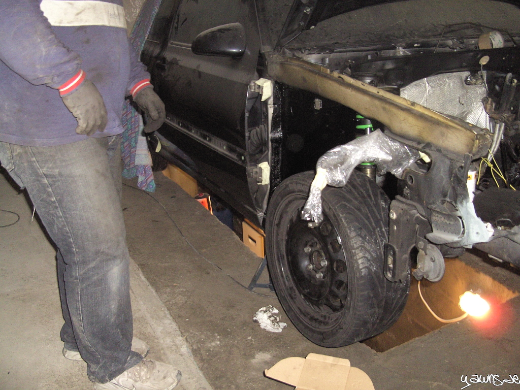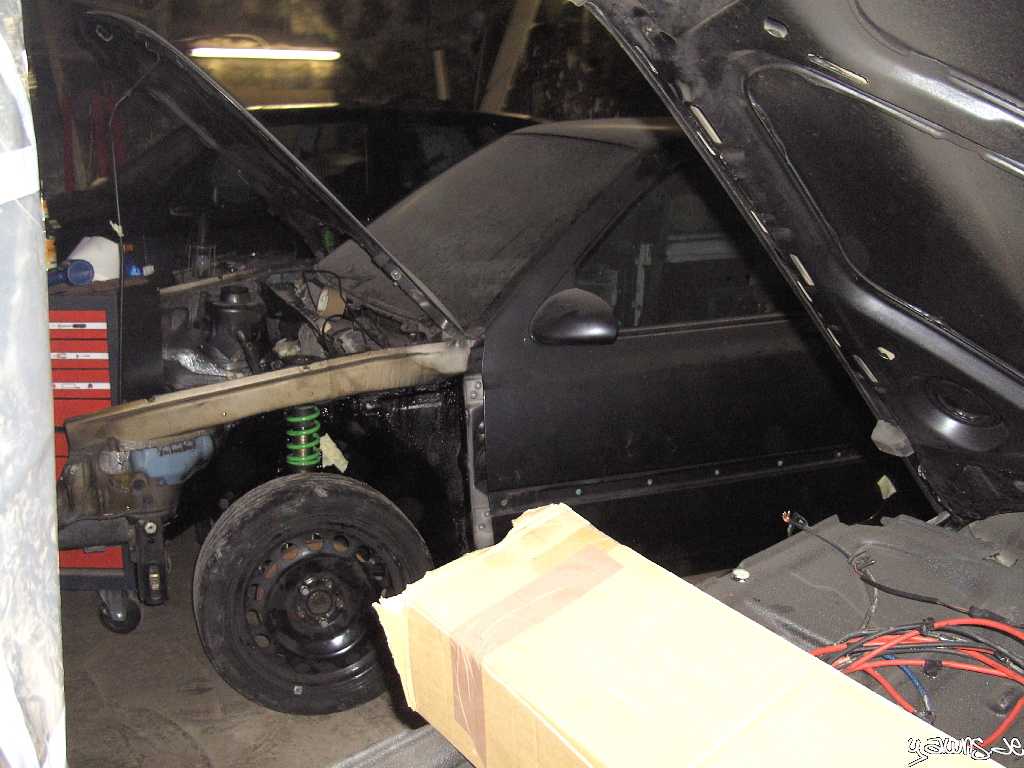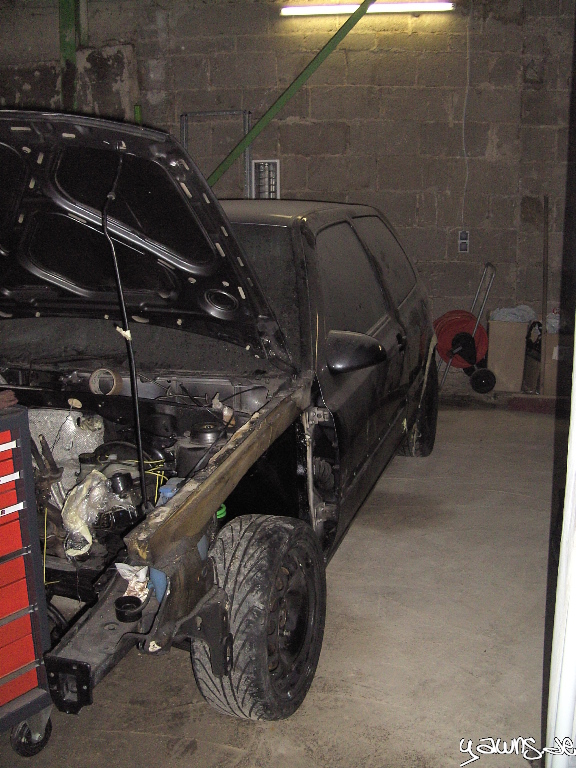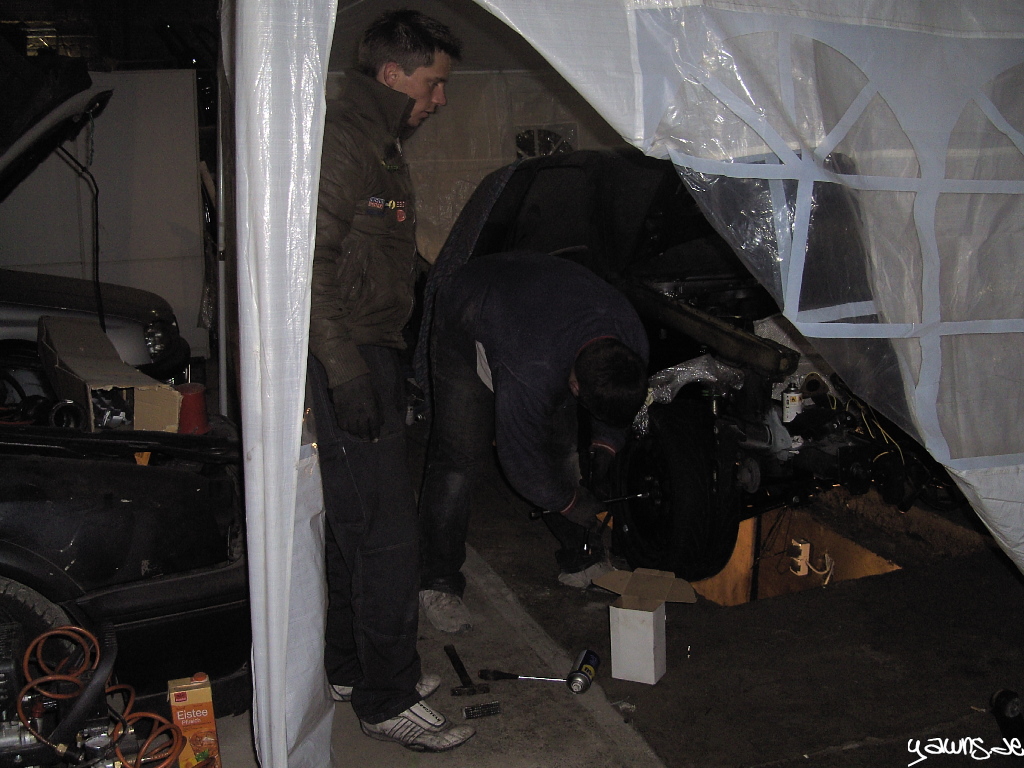 Getreu dem Motto “Do it on all fours” steht der Golf tatsächlich auf allen 4 Rädern, und rollt sogar schon wieder. Es fehlen zwar noch ein paar Sachen und einige Schrauben/Muttern müssen noch ersetzt werden, genauso wie die Kreuzgelenke, aber die Grube hab ich jetzt erstmal frei gemacht für den TT.