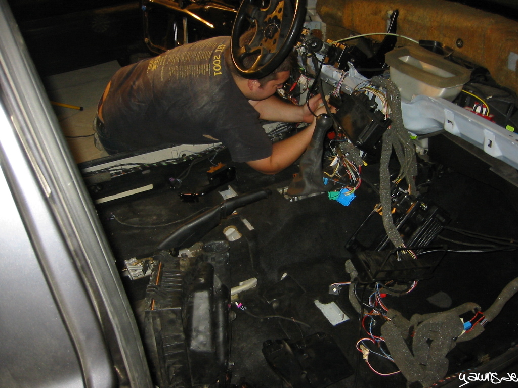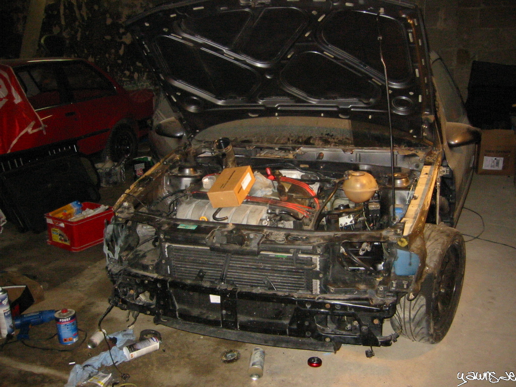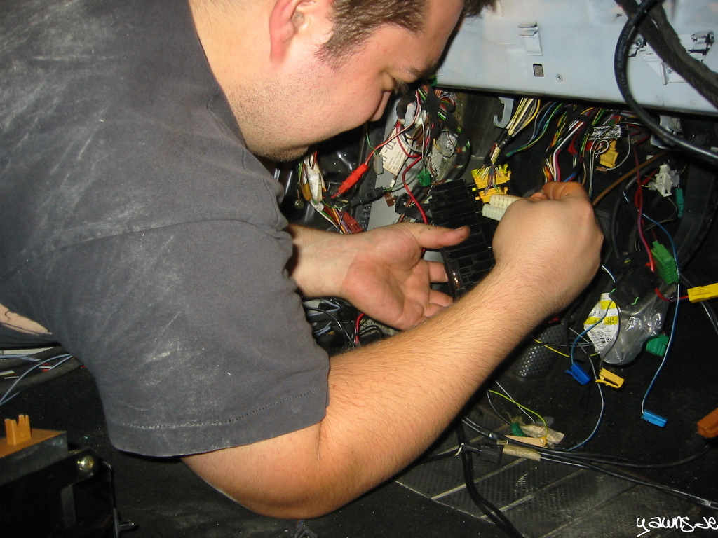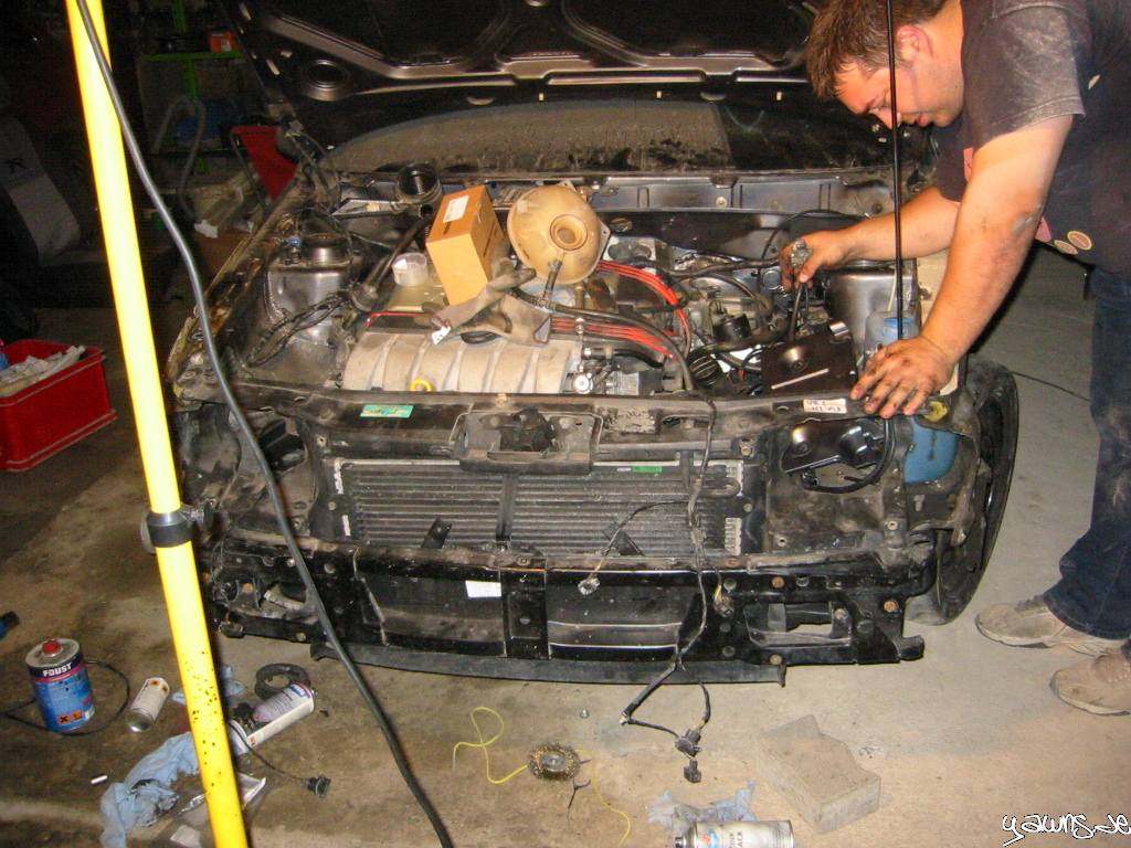 Veröffentlicht am 21.05.200911.01.2015 von StefanVR6 Umbau – Schlossträger und ZentralElektrik Tim und ich waren fleissig. Schlossträger und Querträger sind montiert, Kabel sind ordentlich verlegt und viele Stecker sind angeschlossen, etliche Schläuche sind angeschlossen. Die ZE habe ich angefangen, zusammen zu stecken.