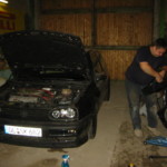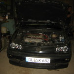 Nach einem arbeitsreichen Tag hab ich den ABS Block und das Notebook geschnappt, und bin in die Halle gefahren, wo Tim schon den ganzen Tag am GT rumgebaut hat. Nach kurzer Überlegung haben wir die Bremsleitungen aus dem Block geschraubt, den Block vom Halter gelöst und den “neuen”verbaut. Zitternd, um ja nichts kaputt zu machen, die Bremsleitungen reingeschraubt, und mal gepumpt .. scheint dicht.
