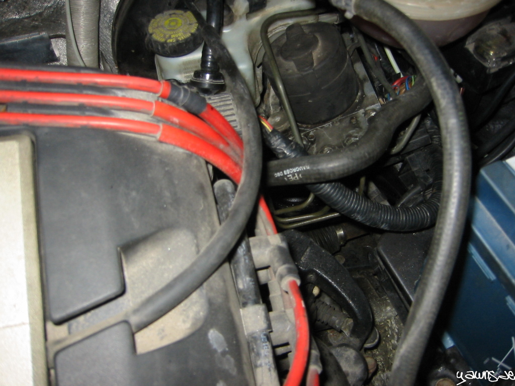 Nach einem arbeitsreichen Tag hab ich den ABS Block und das Notebook geschnappt, und bin in die Halle gefahren, wo Tim schon den ganzen Tag am GT rumgebaut hat. Nach kurzer Überlegung haben wir die Bremsleitungen aus dem Block geschraubt, den Block vom Halter gelöst und den “neuen”verbaut. Zitternd, um ja nichts kaputt zu machen, die Bremsleitungen reingeschraubt, und mal gepumpt .. scheint dicht.