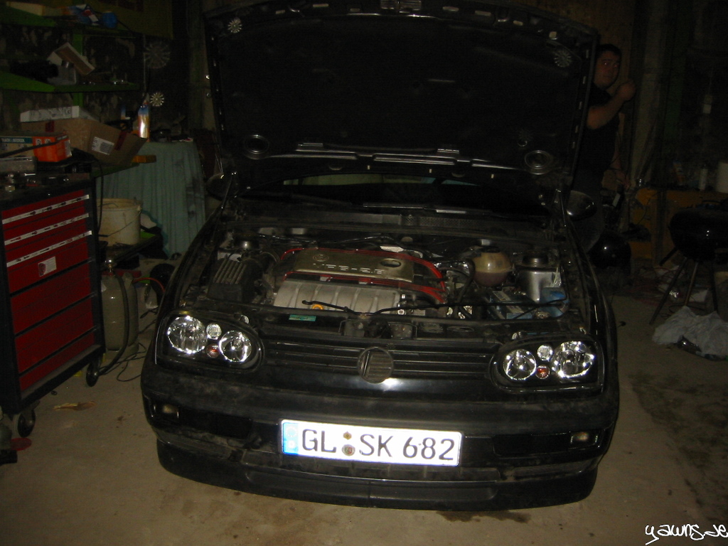 Kurz am GT die ZE komplettiert, so dass die WFS auch funktioniert, und dann manuell entlüftet. Auch nachdem alle 4 Bremsen entlüftet waren, war der ABS Block dicht .. erster Grund zur Freude. Nach einer kurzen Probefahrt um Mitternacht allen Mut zusammen genommen, und mit dem Golf runter ins Industriegebiet gefahren, um Fahreigenschaften, Bremse etc zu testen, und ich muss sagen, ich bin begeistert! Der Wagen schiebt richtig übel, die Bremse ist so schon toll, und das ganze im eigenen Auto …
