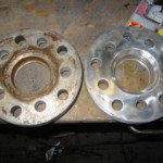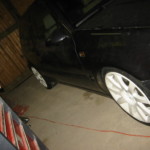 Gestern haben wir den rechten Kotflügel gebördelt, das Fahrwerk runter gedreht, den Kotflügel versiegelt, die Felge drauf gesteckt und die Höhe für gut befunden. Viel tiefer geht nicht, weil ich dann nicht mehr in die Halle komme .. ich will aber auch gar nicht tiefer.