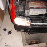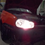 Voller Tatendrang hab ich die Kartons ausgepackt, die ich von Haiko bekommen habe, hab die Lüfter aus dem alten Schloßträger geholt (dabei abgerutscht und einmal den Daumen durch den Träger gedrückt), hab den neuen Wasserkühler ausgepackt, den Klimakühler drauf geschraubt und war dann leicht irritiert … die Wasseranschlüssen am Cabriokühler sind auf der Beifahrerseite. Selbst mit neuen Schläuchen würde ich NIE am VR vorbei kommen, um die Anschlüsse zu verwenden. Also muss doch der alte Kühler herhalten, und es muss eine alternative Methode gefunden werden, den Kühler/Lüfter-Teil mit dem Schlossträger zu verbinden. Derzeit ist das ein einfacher Spanngurt 😉 So konnte ich wenigstens gucken, ob Platztechnisch alles hinhaut … und das tut es. Knapp, aber geht. Da ich am Schlossträger nicht weiter machen konnte, hab ich mich der Elektrik gewidmet. Die Kabelstränge Blinker+Nebler+LWR+Scheinwerfer laufen beim Cabrio in einem Stecker zusammen, also hab ich alles ausgepinnt und in die neuen Steckergehäuse gefriemelt. Die Kabelstränge werd ich noch zusammenfassen und neu umwickeln, aber es funktioniert 🙂 Jetzt brauch ich zwar noch nen neuen Lichtschalter (mein Cabrioschalter hat keine NSW, hab derzeit einen ausm Vento angesteckt), aber nun gut ..