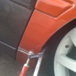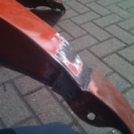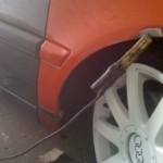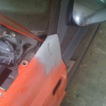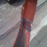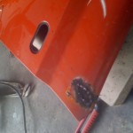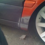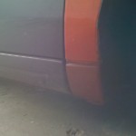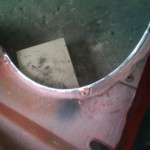 Habe dann heute gegen 12 Angefangen weiter zu machen, auf diesem Wege habe ich Dir für ein wenig „Platz“ gesorgt und die Radläufe angelegt. Im Anschluss habe ich die erste Kotflügelecke angepasst und anschliessen geschweisst. Auf der Fahrerseite habe ich schonmal das Antennenloch zu gemacht.