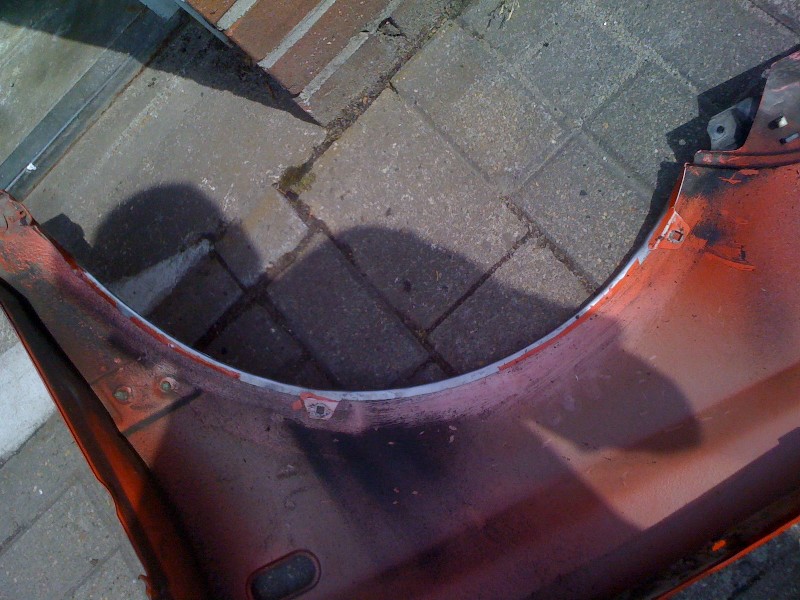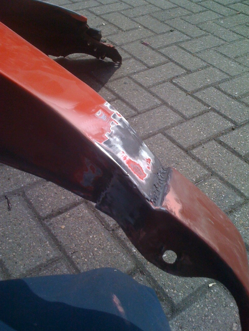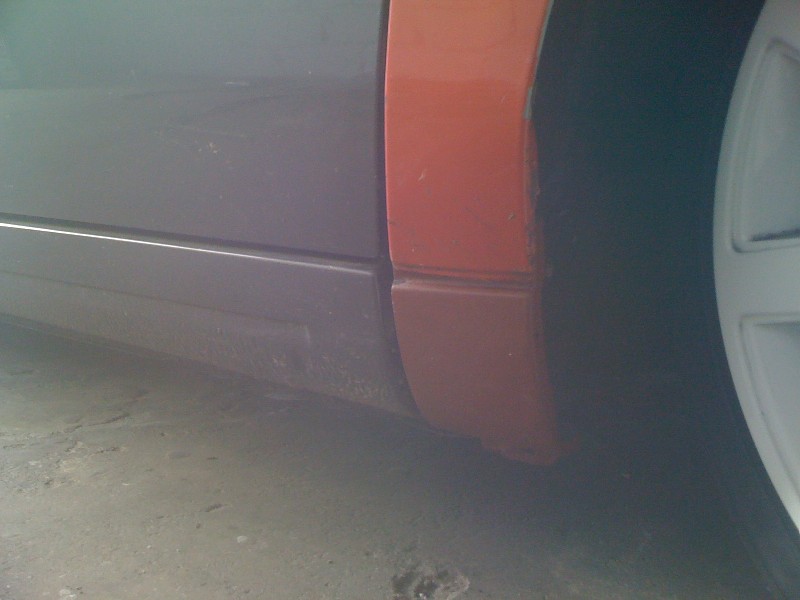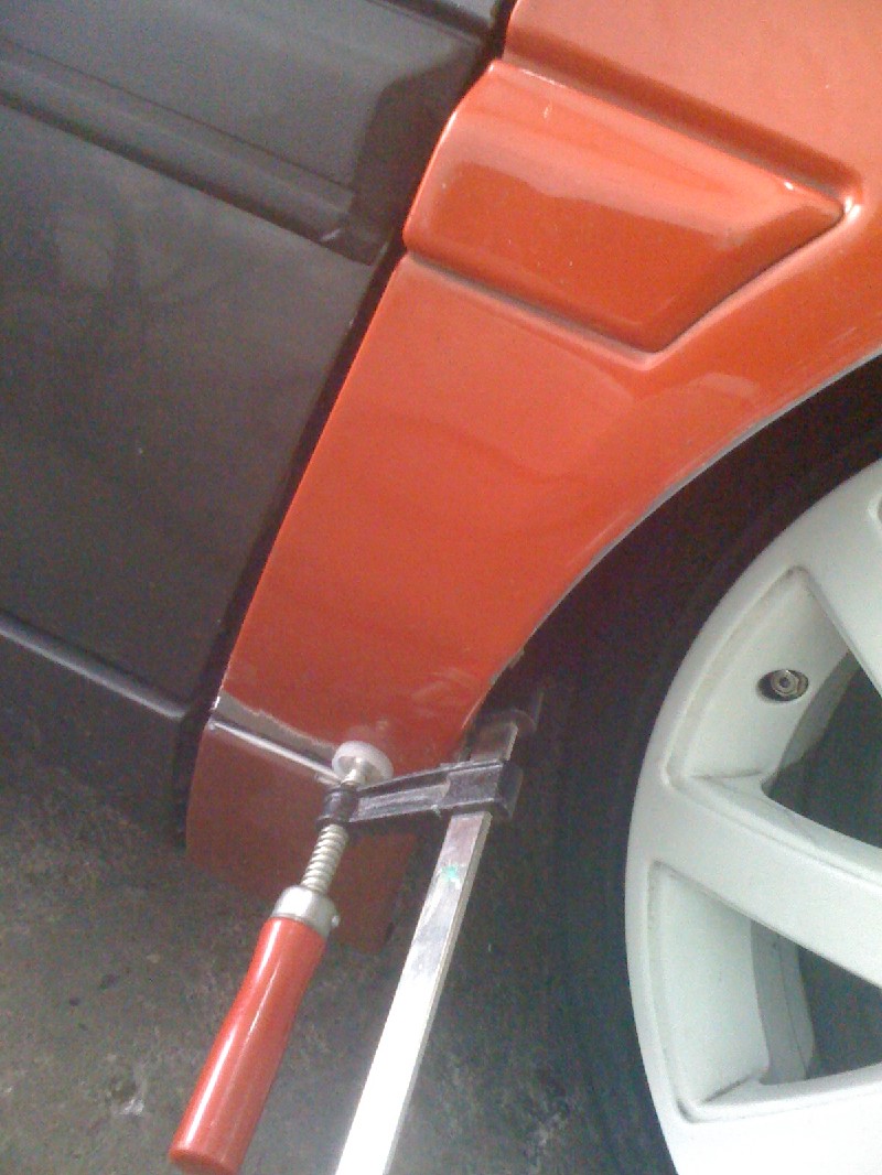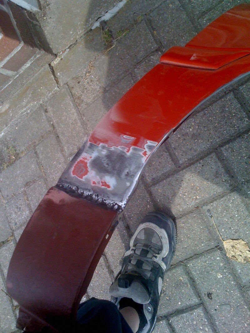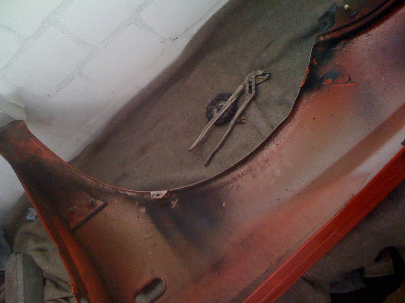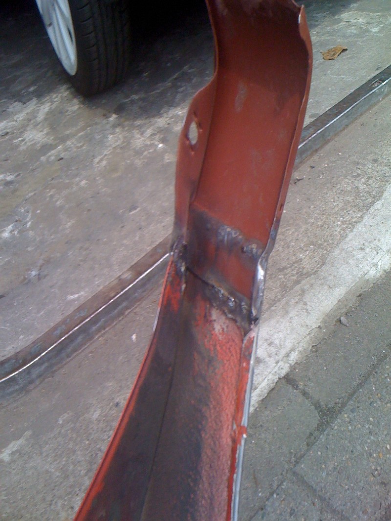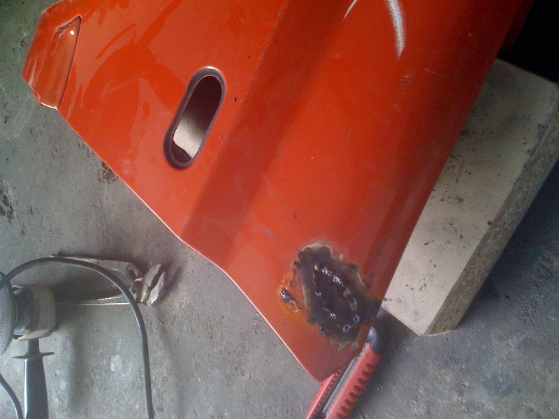 Habe dann heute gegen 12 Angefangen weiter zu machen, auf diesem Wege habe ich Dir für ein wenig „Platz“ gesorgt und die Radläufe angelegt. Im Anschluss habe ich die erste Kotflügelecke angepasst und anschliessen geschweisst. Auf der Fahrerseite habe ich schonmal das Antennenloch zu gemacht.