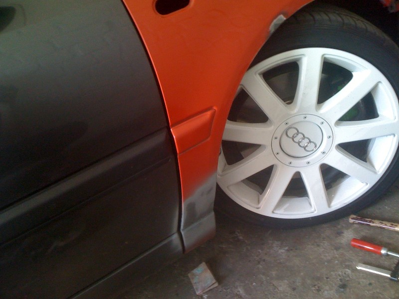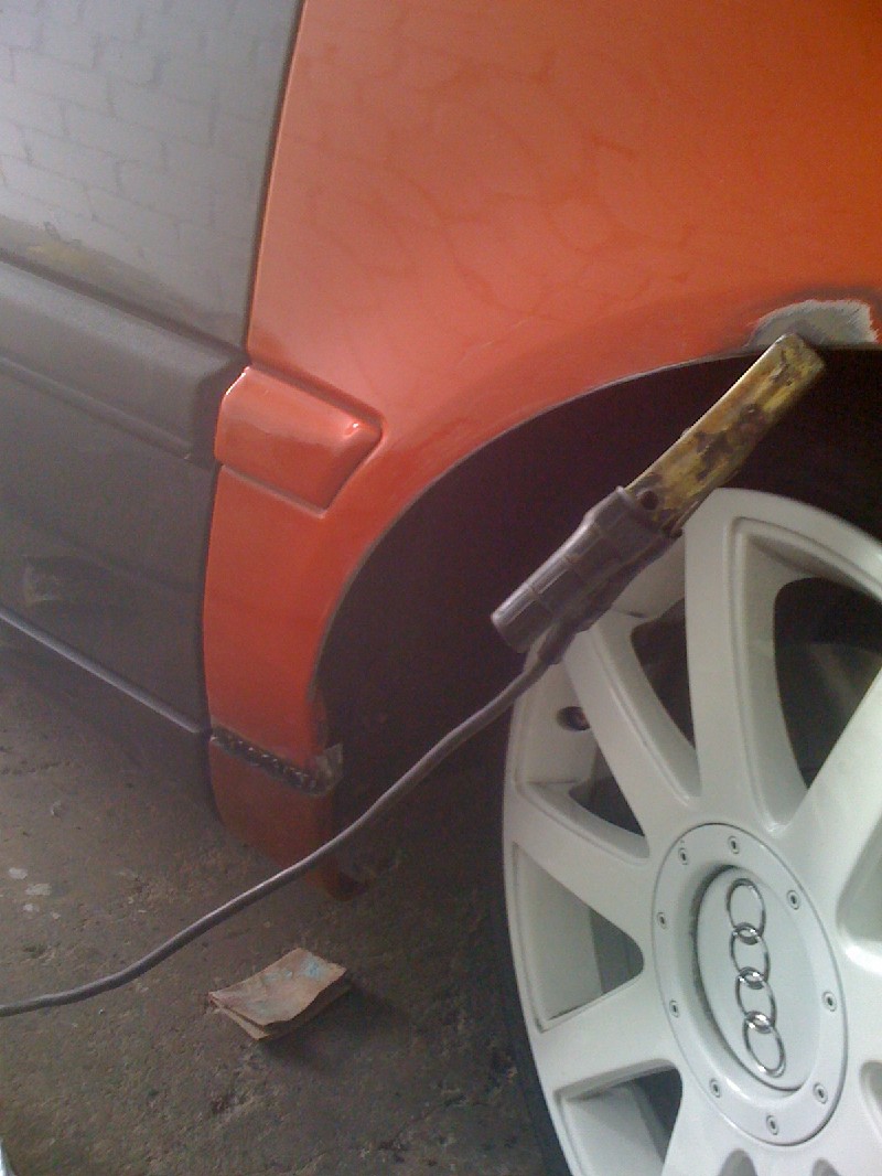 Jetzt herscht Baustopp weil die zweite Kotflügelecke fehlte und ebenso die Audi Einschweissbleche. Und jetzt ist Herr Krause dran…
