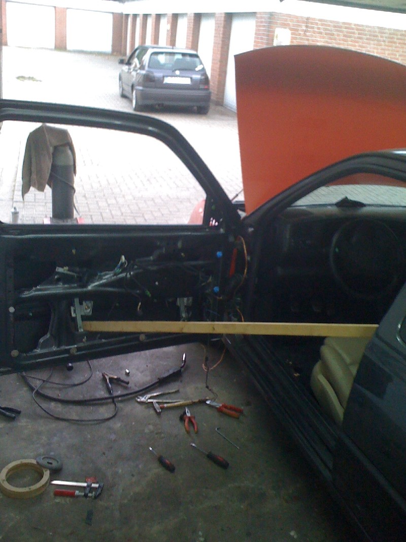 Defakto bin ich fertig… ich muss nur noch das Schloss anpassen auf der Fahrerseite und alles wieder ein wenig zusammenbauen, dann brauchen wir nur noch die Tür wechseln und dann kannste losfahren…