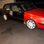 So, nach einem langen Arbeitstag gestern und Hallenaufenthalt waren Tim und ich heute früh um 3 oder so noch schnell beim Golf, Bilder für den Lackierer machen. Nachdem wir dann bei Stella das Federbein vorne links getauscht haben, hat sich der Lackierer die Bilder aufm Notebook angeguckt und mal grob 2000-2500€ und knappe 3 Monate in den Raum geworfen. Ist zwar einiges, aber die Arbeiten bei Stella sehen sehr gut aus.
