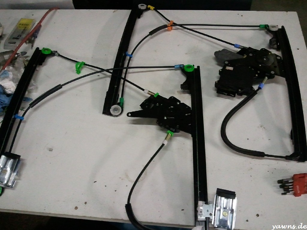 Bei dem eFH Set, das ich mal irgendwann gekauft habe, waren beide „Scheibenhalter“ kaputt (verbogen, Plastik kaputt, ..). Da man die nicht einzeln kaufen kann, habe ich bei ebay diesen Ersatz gekauft: FENSTERHEBER ELEKTRISCH VORNE RECHTS VW GOLF III 3 1H + VARIANT KOMBI + VENTO | eBay