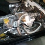 Nebenher habe ich – weil man ja Langeweile hat zwischendurch – die Gurtschlaufen angefangen zu polieren. Die vom Cabrio passen bei mir ja leider nicht, weil sie nicht für diese Haltelasche gemacht sind sonderm zum Schrauben. Mal sehen, vielleicht lasse ich die im Winter ja mal verchromen .. hat da jemand einen guten günstigen an der Hand?