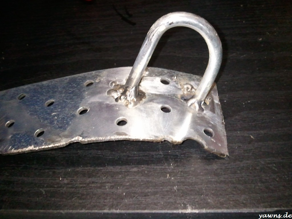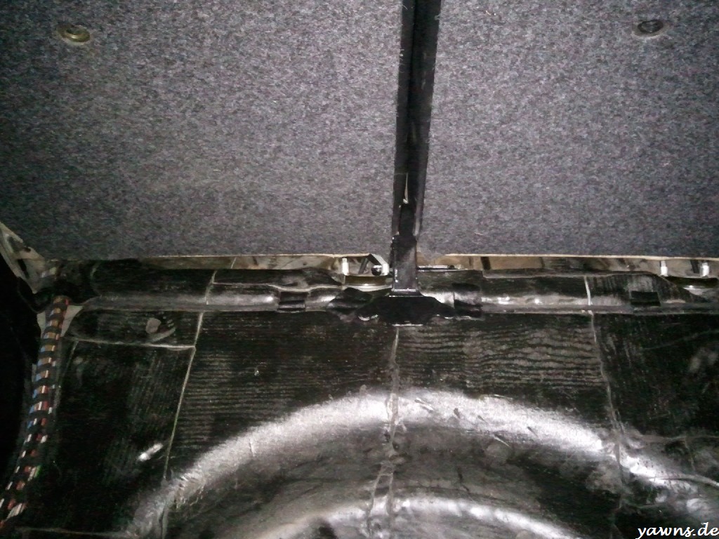 Heute habe ich ihn also zurecht gebogen, auf eine Metallplatte geschweißt, das ganze schwarz lackiert und verschraubt. Die Rückbank sitzt somit.