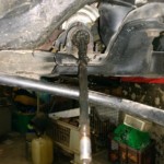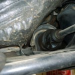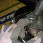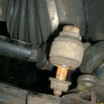 Die Koppelstangen bzw deren Lager haben auch schon darunter gelitten, also bekommen die Querlenker jetzt R32 Lager und die Koppelstangen kommen gleich mit neu. Die beiden Spurstangenköpfe sind problemlos runter gegangen. Fahrerseitig ist schon der neue drauf, Beifahrerseitig muss natürlich erst die Manschette gemacht werden. Hoffentlich ist – wenn die Köpfe getauscht und die Lager neu gemacht sind, auch das komische Knacken beim Anfahren endlich weg. Die Manschette der Spurstange rechts ist eingerissen, kommt also auch noch neu …