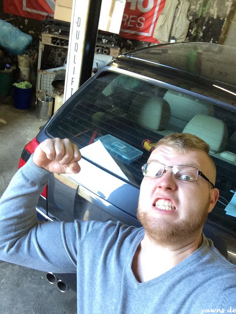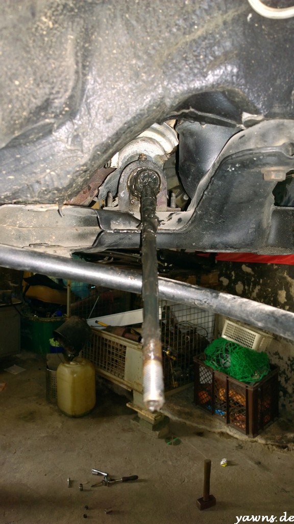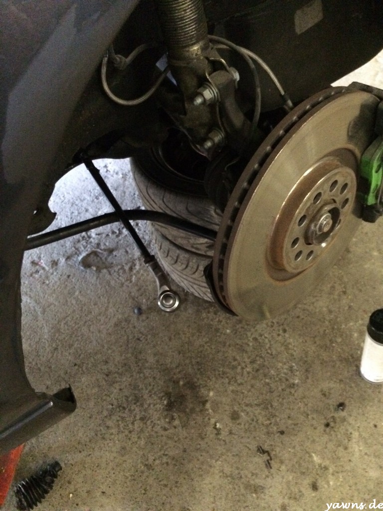 Beim Check auf der Hebebühne ist uns dann aufgefallen, dass die Querlenker beide Spiel haben am hinteren Lager. Die Lager sind damals neu gekommen und sind nicht wirklich viel gelaufen. Bei der Demontage ist dann klar geworden, wieso die Querlenker Spiel haben .. die Lager sind verdreht eingepresst worden 🙁