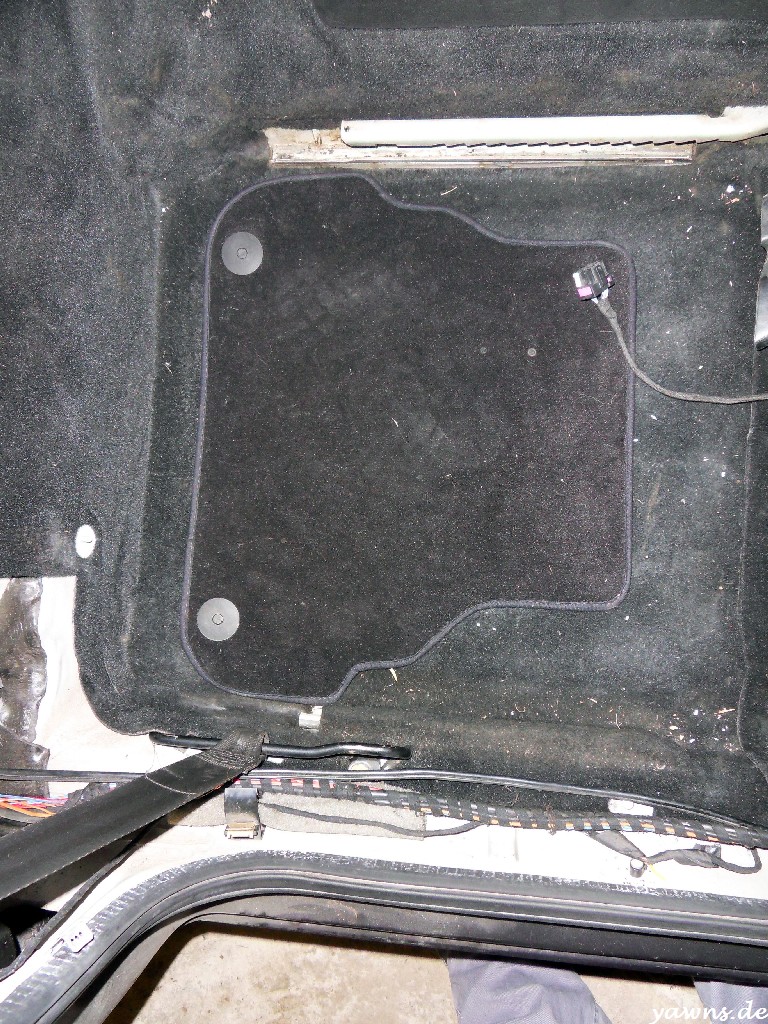 Tatsächlich bin ich auch kurz zum Auto gekommen, als wir in der Halle waren. Ich habe die ganzen Kabel (in.pro Fensterheber, eASP, Waeco ZV, ..) aus den Türen gerupft, so daß nur noch der Fensterheber selber drin ist. Vom Motor kommen 2 Kabel, die man mit 12V und Masse belegt und das Fenster fährt runter bzw hoch. Reicht, um beim Lackierer zu demontieren.