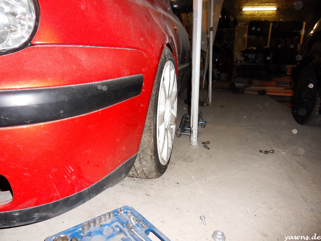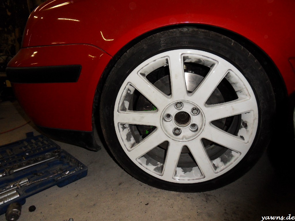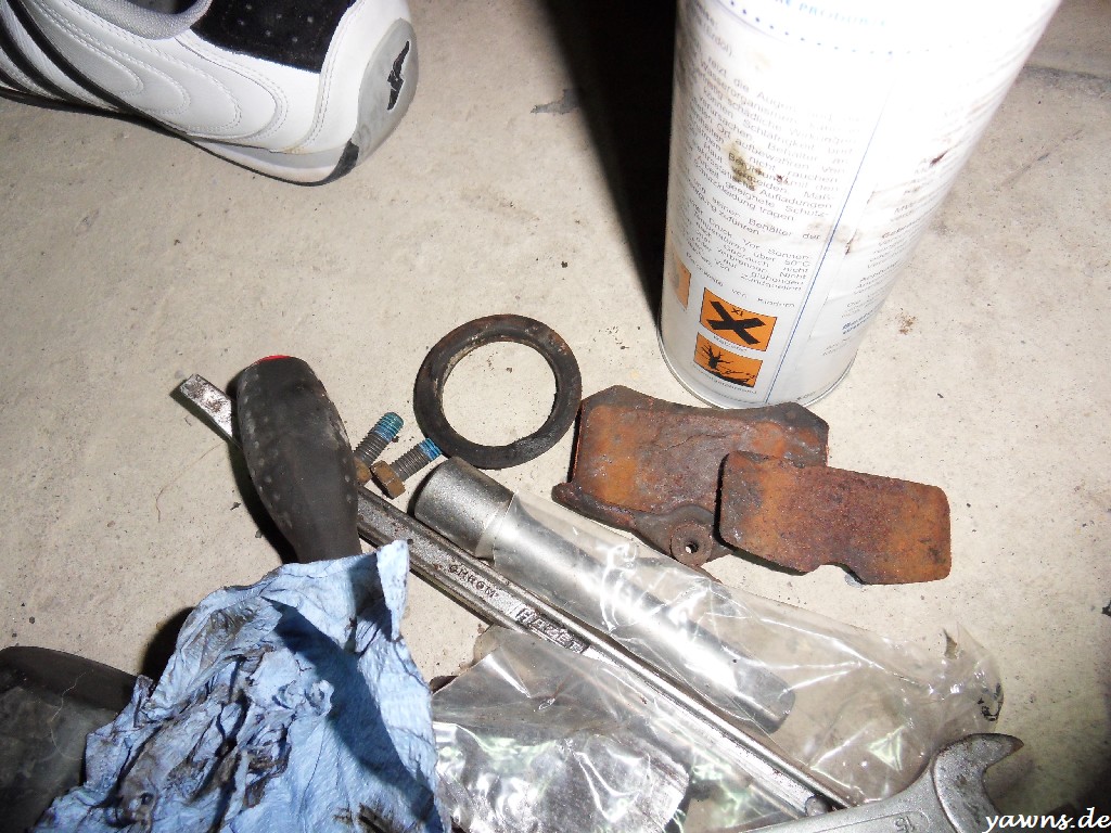 Es gibt tatsächlich eine kleine Neuigkeit. Zum einen haben wir vorletztes Wochenende die Bremse entlüftet. Danke an dieser Stelle an Kreator, der mit dem Entlüftungsgerät ausgeholfen und die Arbeit unterm Auto erledigt hat.