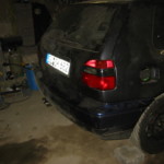 Auf der Fahrerseite hat Tim schonmal den Kotflügel montiert, und vorher die beiden oberen Träger am Auto mit Wachs eingeschmiert, damit da nichts dran kommt.
