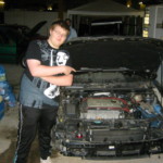 Nachdem ich noch auf die Schnelle ne neue Flex kaufen musste, weil meine kaputt in der Ecke und Tims kaputt bei ihm zu Hause liegt, haben wir den VSD gekürzt. Von Hermann aka Heizpilzschrauber haben wir dann „mal eben“ nen 55er Rohrverbinder geholt (und uns 3 Stunden verquatscht :O ). Danach den VSD montiert (den Rest hatte ich ja vorher schon unters Auto gezimmert, und dann kam der Moment … 😀