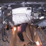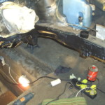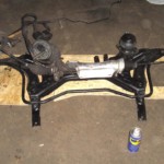 Hinterher den Kat mit Krümmer montiert, den Halter unterm Kat angebaut, und die Vorderachse endlich wieder unters Auto gehangen 🙂