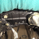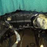 Motorraum und Heckblech lackiert bzw. mit Klarlack versehen. Dafür, dass es mit der Dose und bei den Temperaturen lackiert wurde, ist es echt top geworden. Zumal im Motorraum hinterher eh die Dämmmatte an der Spritzwand hängt.